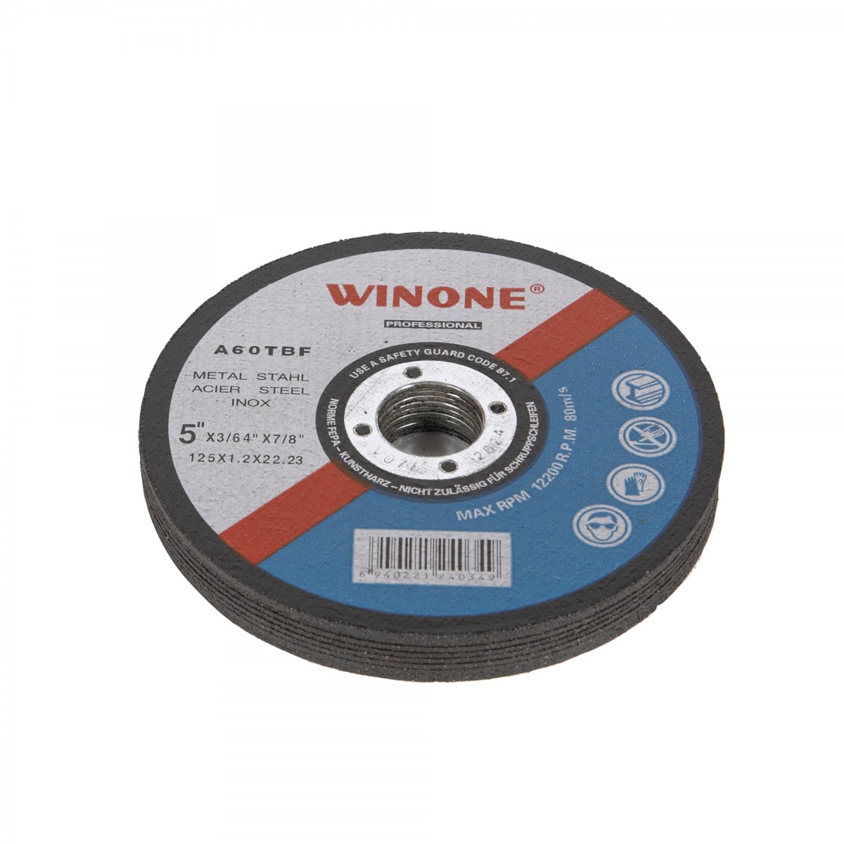 • Cod produs: Disc abraziv pentru metal Winone, diametru 125 mm, 1buc