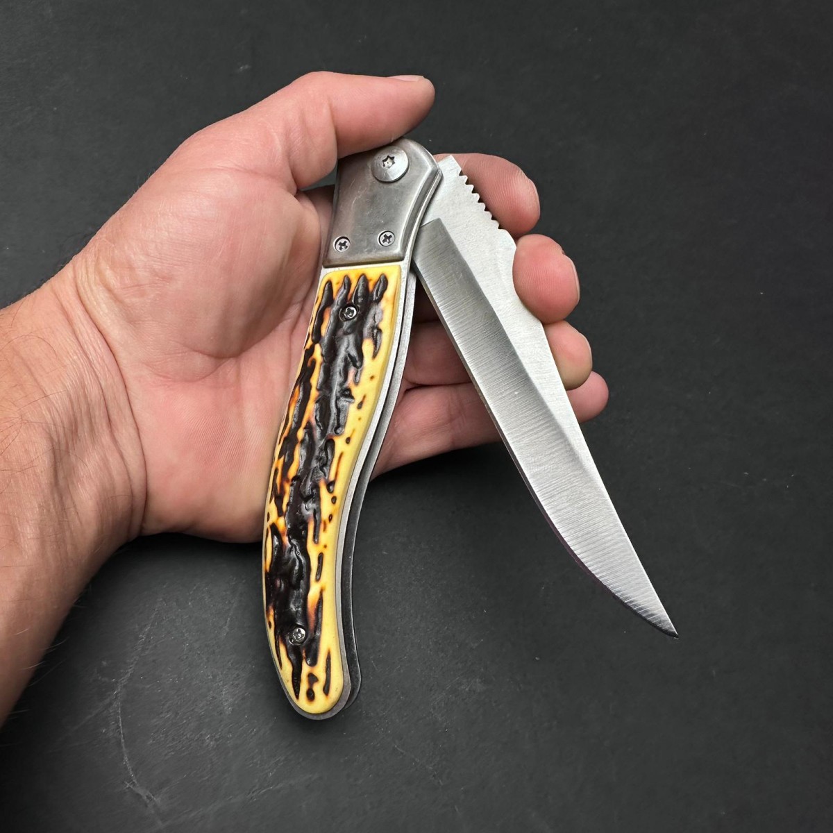 Cuțit tip Briceag Camping și Drumeție Doggy 19cm – Lamă din Oțel Inoxidabil, Mâner imitatie Corn Cer..