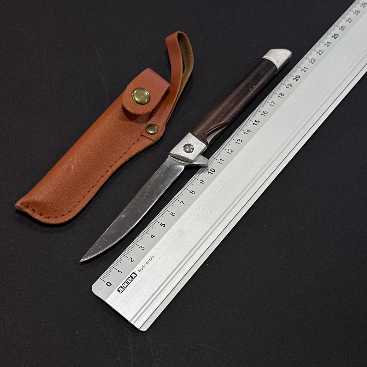 Cutit camping tip Briceag 21cm, lama otel inox, maner lemn maro, cu husa piele maro BRC-21MHP