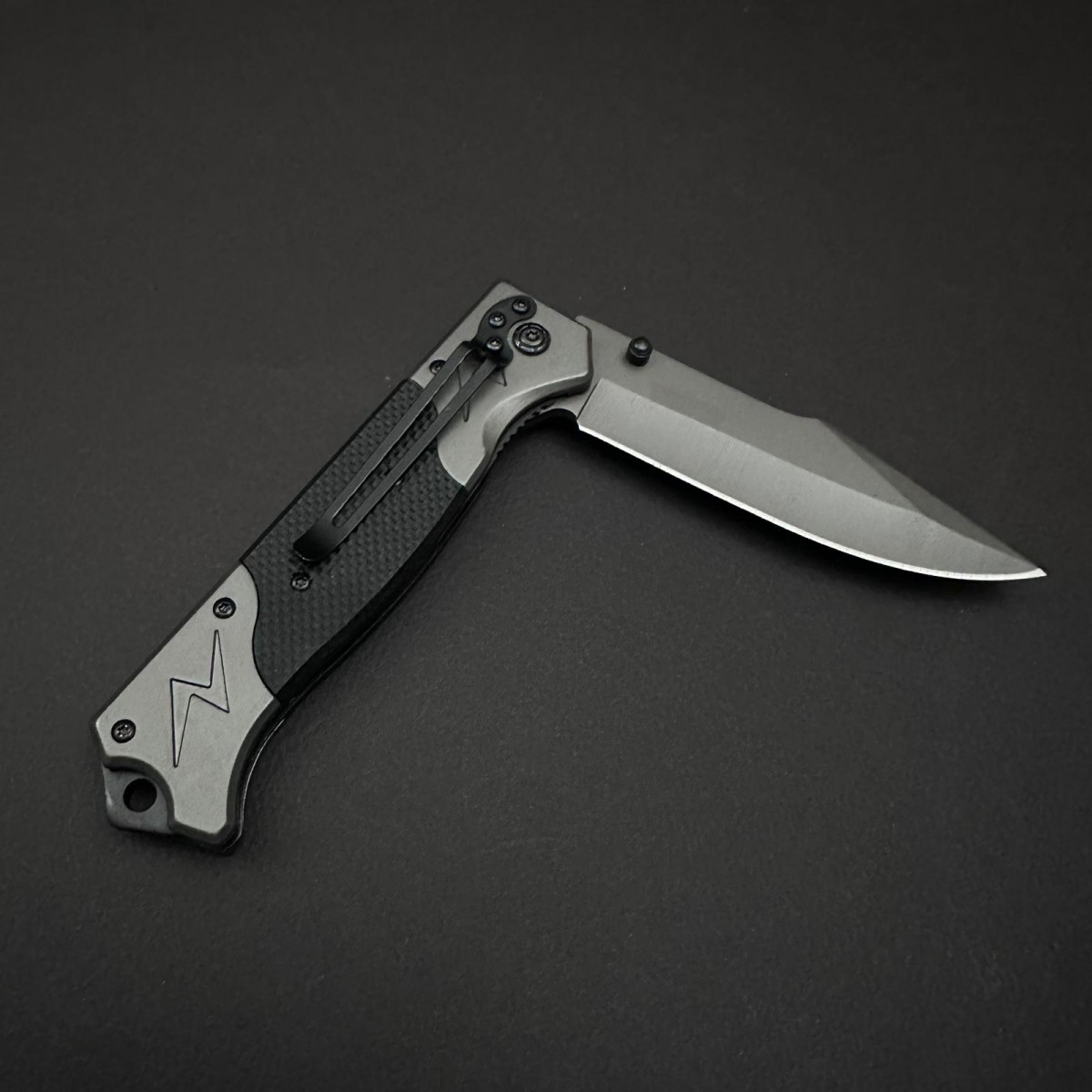 Cuțit cu aspect agresiv, pliabil pentru transport facil. Mult mai practic decât un Bowie fix de aceeași mărime, fără a sacrifica prea mult din putere.