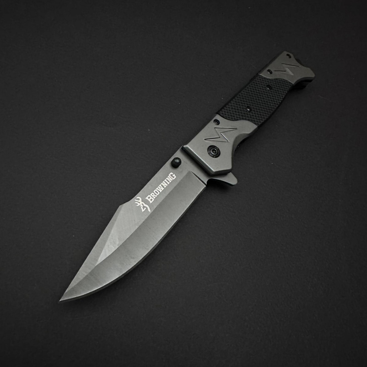 Cutit camping tip Briceag Browning 23cm, lama otel inox, maner metal+abs, cu husa, negru