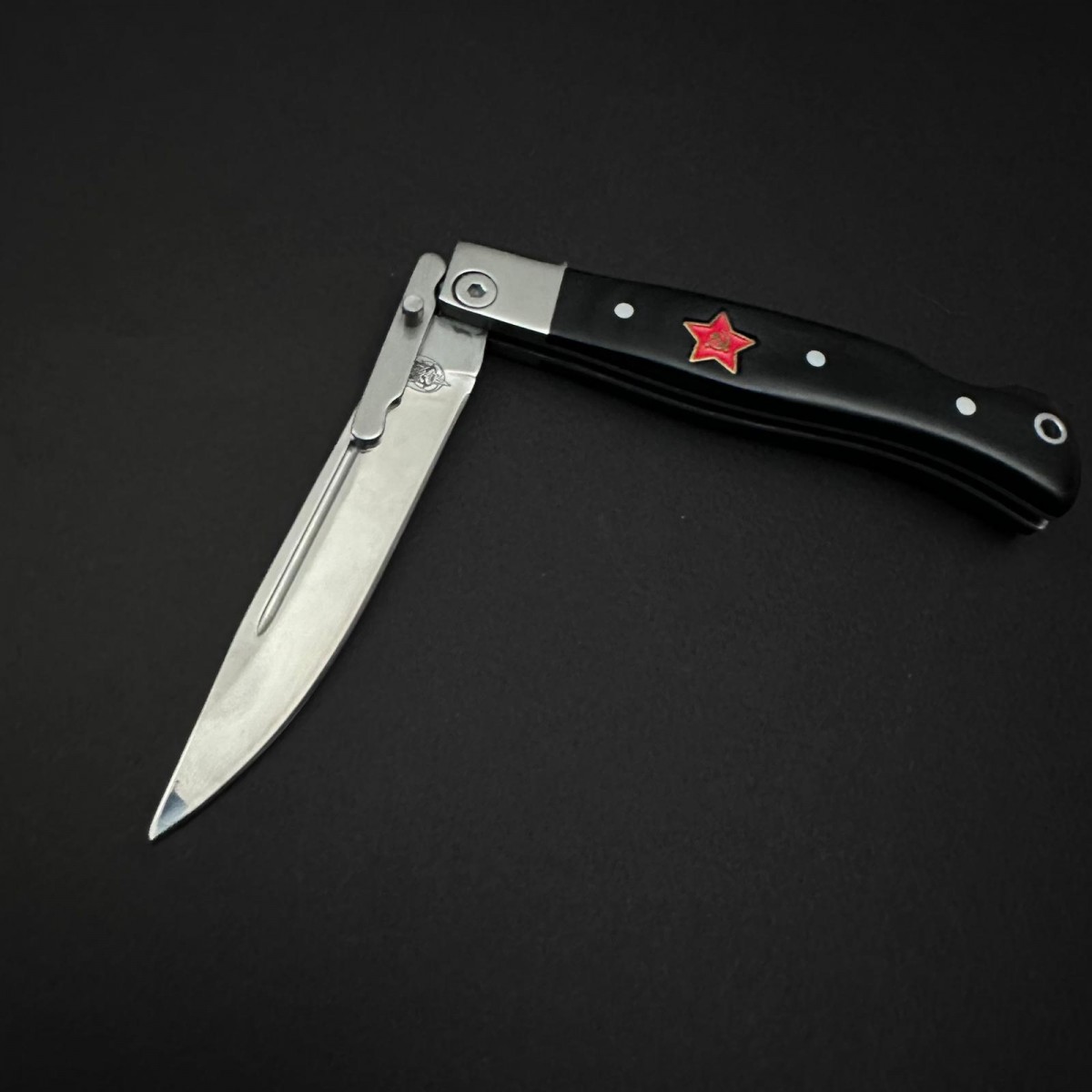 Cuțit cu aspect agresiv, pliabil pentru transport facil. Mult mai practic decât un Bowie fix de aceeași mărime, fără a sacrifica prea mult din putere.