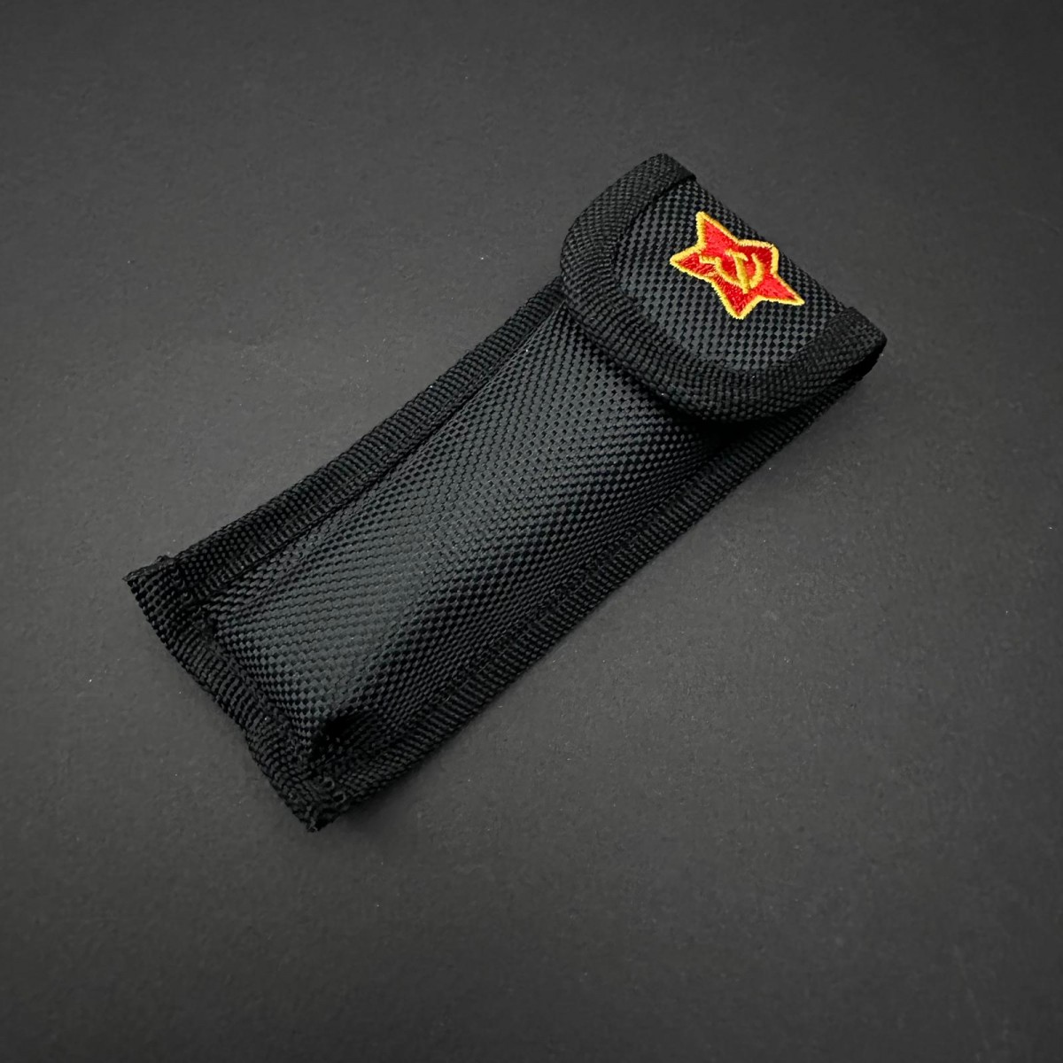 Cuțit pliabil camping tip Briceag – lamă inox, mâner metal + abs, total deschis 22 cm, cu husă textilă.