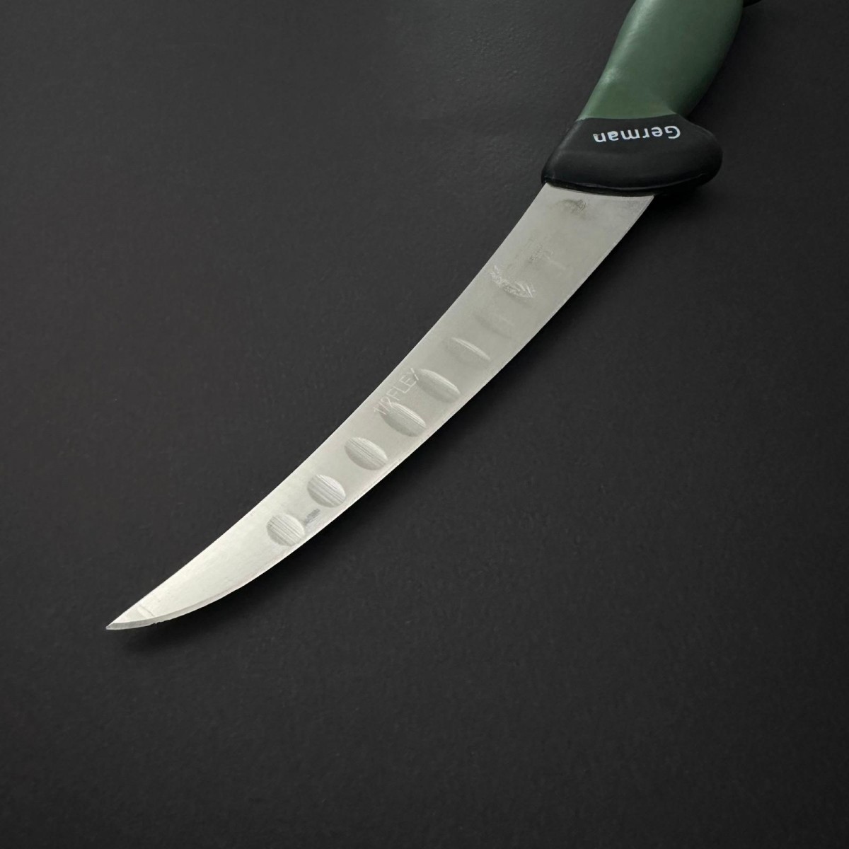 Cuțit măcelărie dezosat 32 cm, lamă cu caneluri oțel inoxidabil 1/2 FLEX, mâner silicon verde – Cod:..