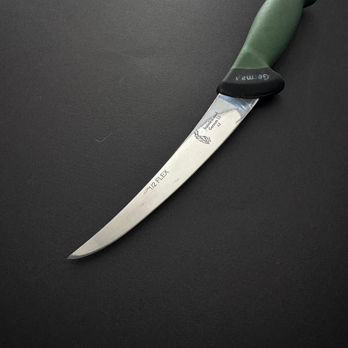 Cuțit măcelărie dezosat 30 cm, lamă cu caneluri oțel inoxidabil 1/2 FLEX, mâner silicon verde – Cod:..