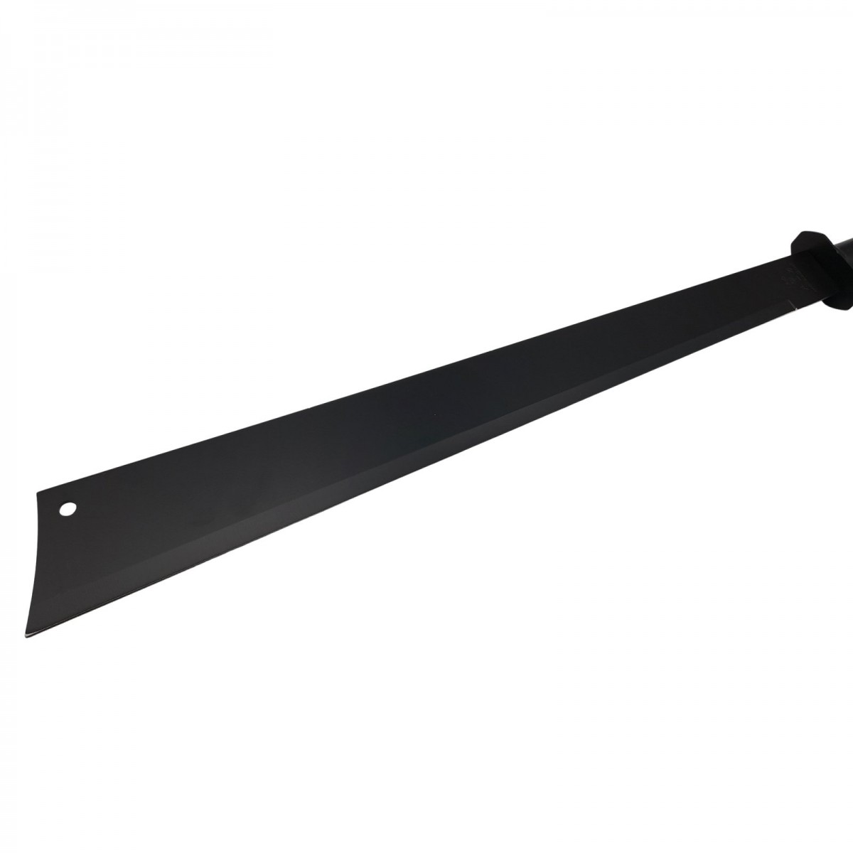 O maceta / sabie impresionantă și multifuncțională – lama extrem de lungă combinată cu mânerul texturat negru și husa textilă o face un tool esențial pentru situații extreme în natură, oferind putere maximă de tocare și versatilitate reală.