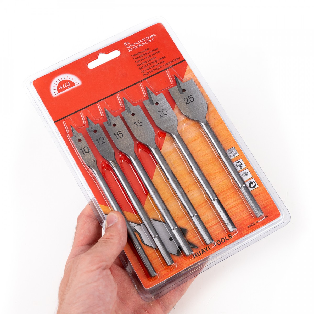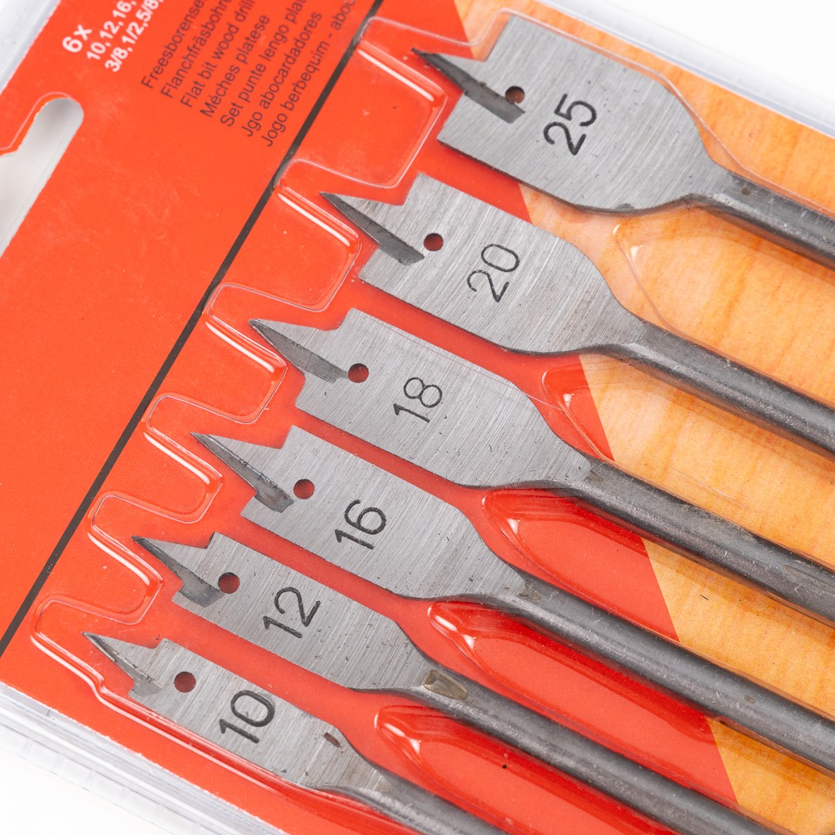 • Cod produs: Set burghie plate lemn, 6 piese, 10/12/16/18/20/25mm