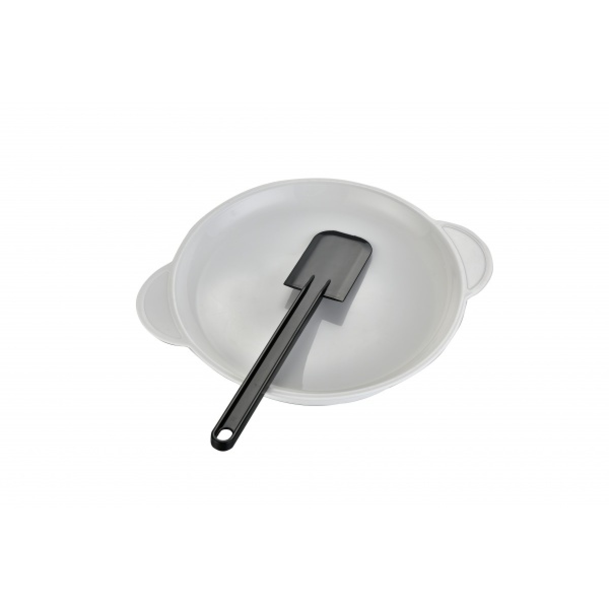 - Aparatul vine cu doua accesorii incluse. Farfurie de plastic pentru punerea clatitelor si o lingurita pentru manevrarea compozitiei