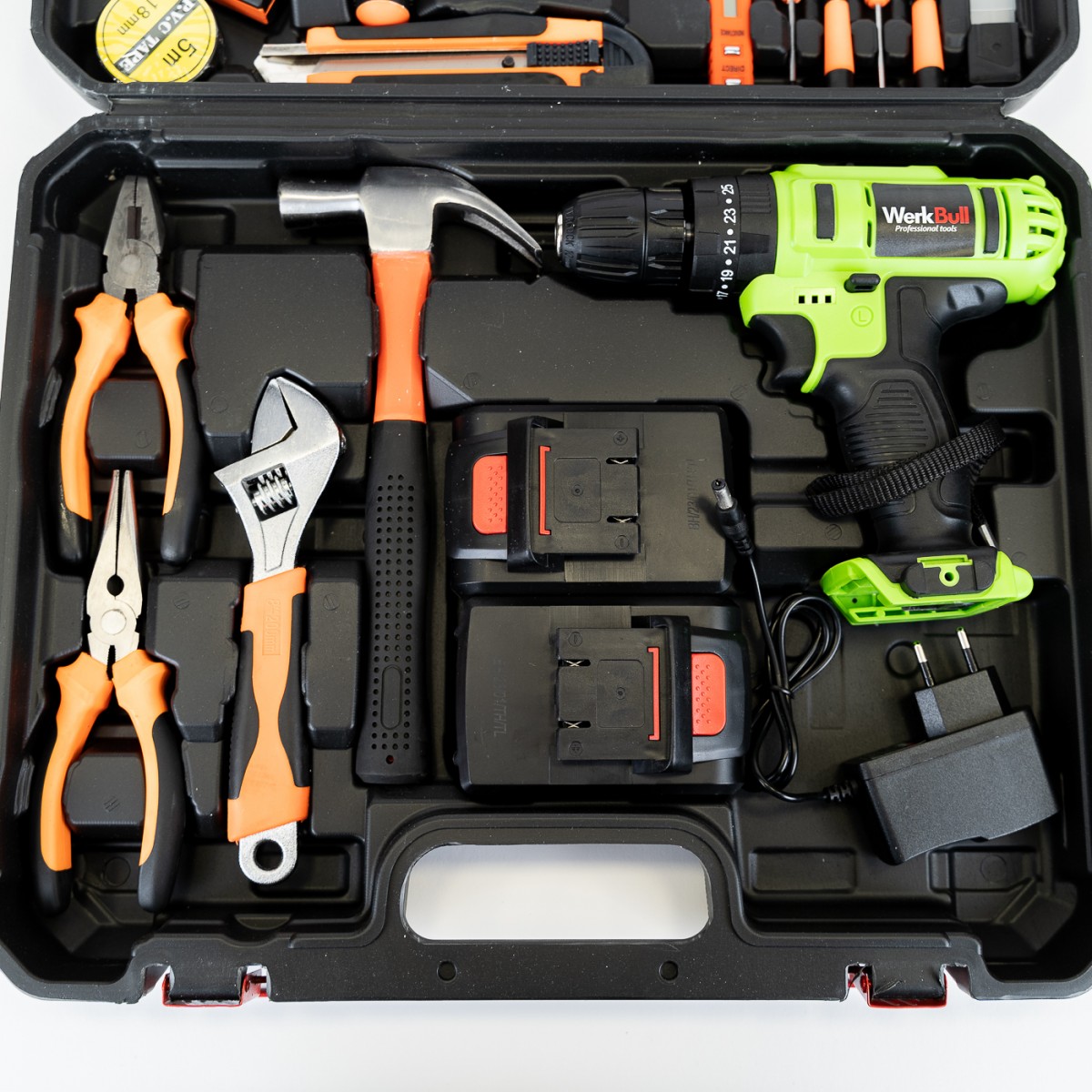 Trusa Autofiletanta cu percutie WerkBull, 2 acumulatori 36V 5Ah, 110 accesorii si scule
