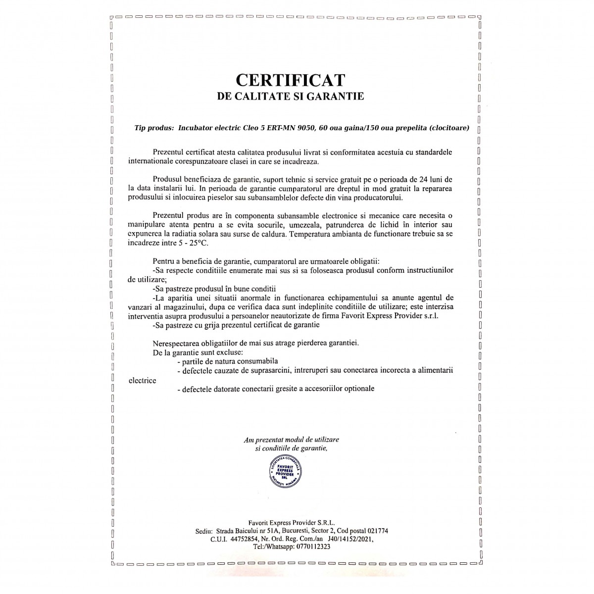 • Cod produs: Incubator electric ERT-MN 9050