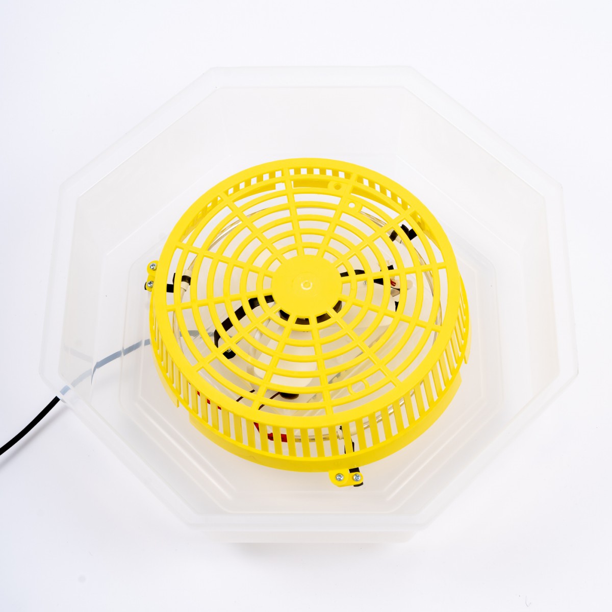 Incubator electric pentru oua, cu orificiile practicate în carcase, se asigură o ventilare lentă şi continuă a aerului din interior, înlăturând astfel, excesul de bioxid de carbon şi alte noxe rezultate în timpul incubării. Incalzirea este asigurata de o rezistenta electrica. Circulatia aerului in interior este facuta de un motor cu elice. Controlul temperaturii este asigurat de un sistem electronic